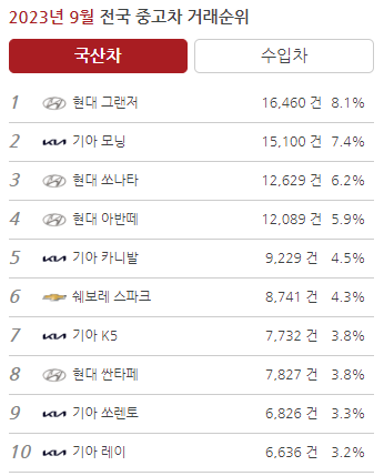 지금까지 제가 직접 정리한 중고차 시세표와 2023년 10월을 기준으로 한 중고차 거래순위 및 금액별 중고차 목록을 함께 살펴봤습니다. 이 글이 중고차 구매에 어느 정도 도움이 되었으면 좋겠어요. 중고차와 자동차 관련 지식을 손쉽게 전달하는 10분전 이였습니다!